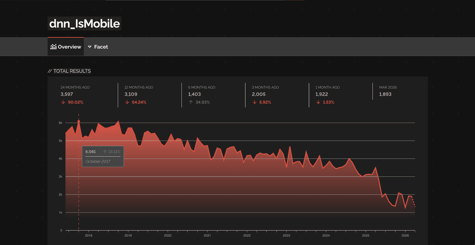 By quickly asking our old friend Shodan for sites that set the cookie dnn_IsMobile, we get about 1645 servers exposed online (Apr 17, 2026):